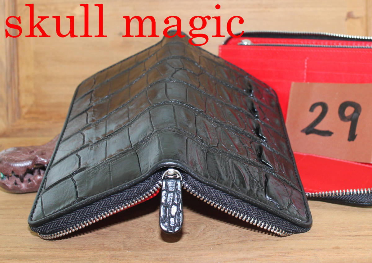 - 円高還元SALE : No29 最高級モデル! 尾~腹部分 シャムクロコダイル 20mm極薄 ラウンドファスナー シャムワニ 長財布 赤内装