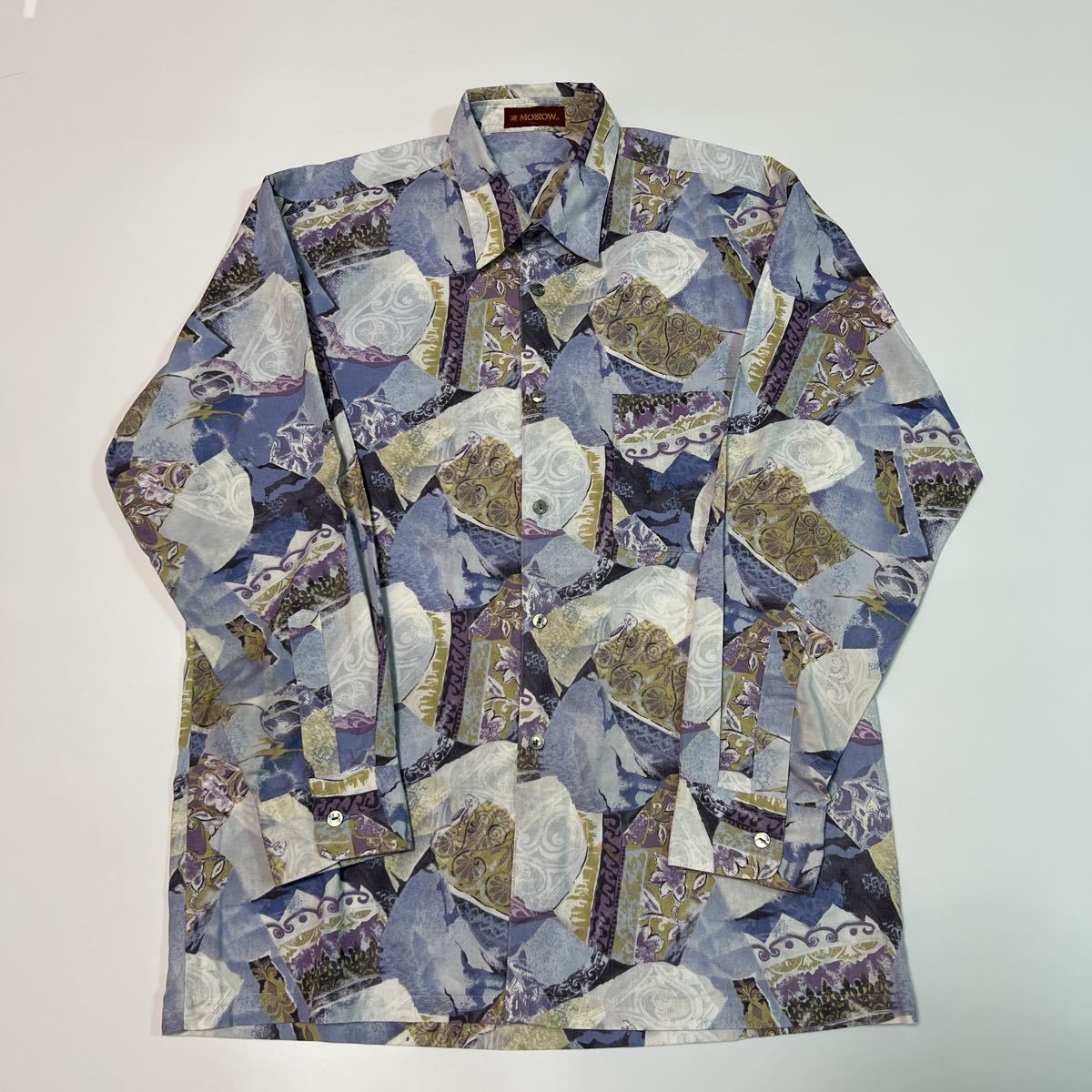 - MORROW 総柄 柄シャツ レトロ アート ビンテージ 長袖シャツ ポリエステル45% 綿55%