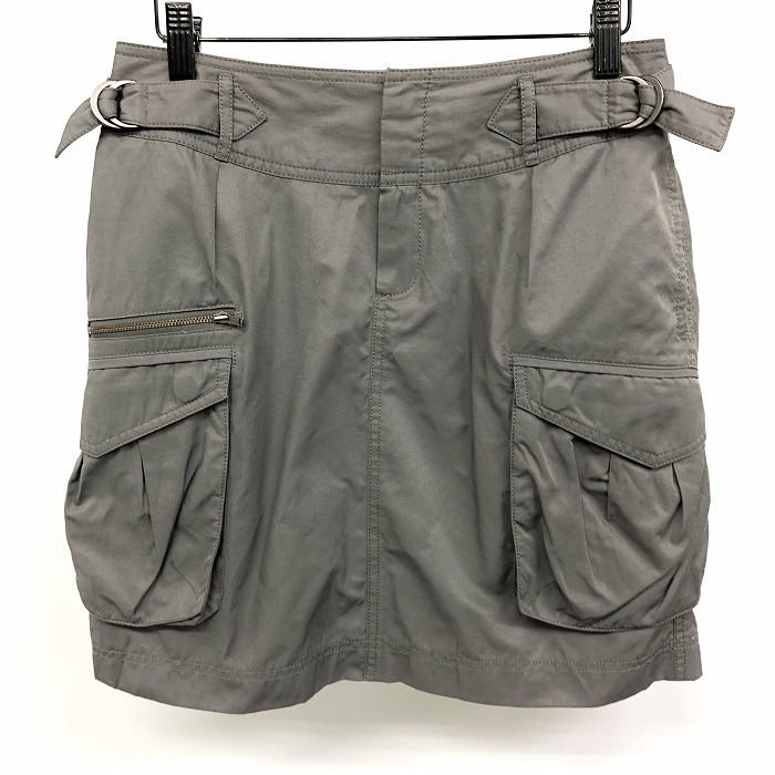 > BANANA REPUBLIC バナナリパブリック 4 レディース 若干薄手 カーゴスカート 裏地無し ウエストに調節ベルト 綿×ナイロン グレーカーキ系