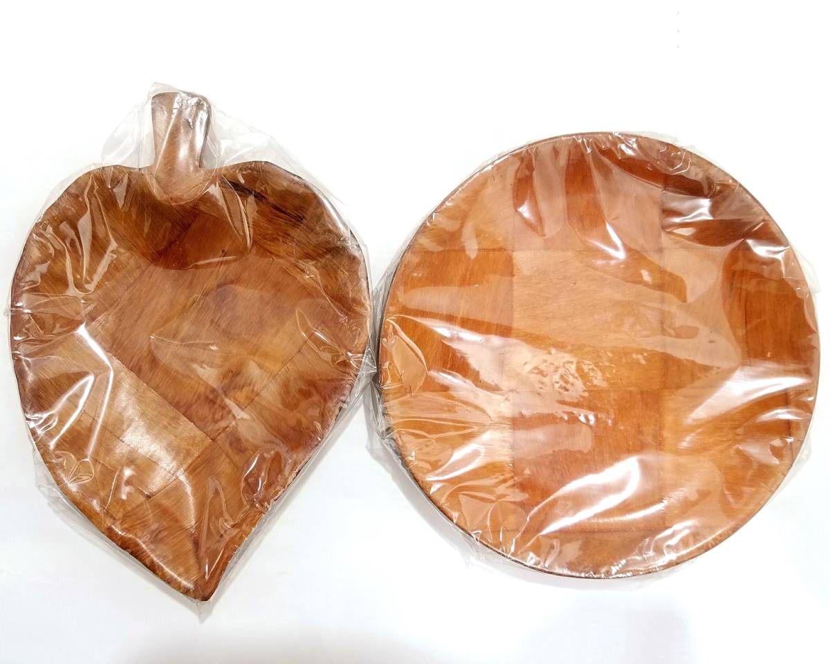 - 民芸品 未使用(新品)木製ソーサー5枚セット(丸型3枚とリーフ型2枚)ウッドプレート小皿トレー葉っぱトレイ 小物入れ レターパックプラス対応