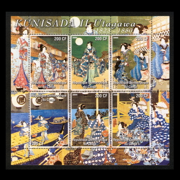 - ■コンゴ切手 2005年 歌川国貞(二代目) / 浮世絵 / 歌舞伎 6種シート