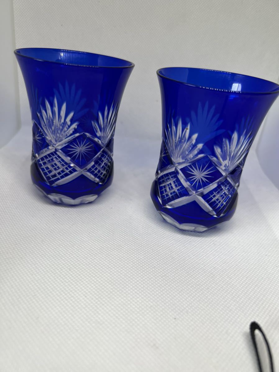 - 手造り 切子 藍かすり 酒グラス ペア 2個セット 酒器 酒盃