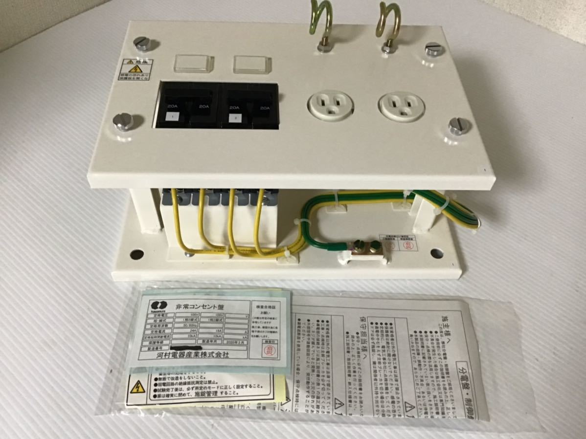 > ★未使用★ 河村電器 非常コンセント盤 遮断器BH-K コンセント2 ブレーカー2 20A 超高層建築物 地下街 消防 K2