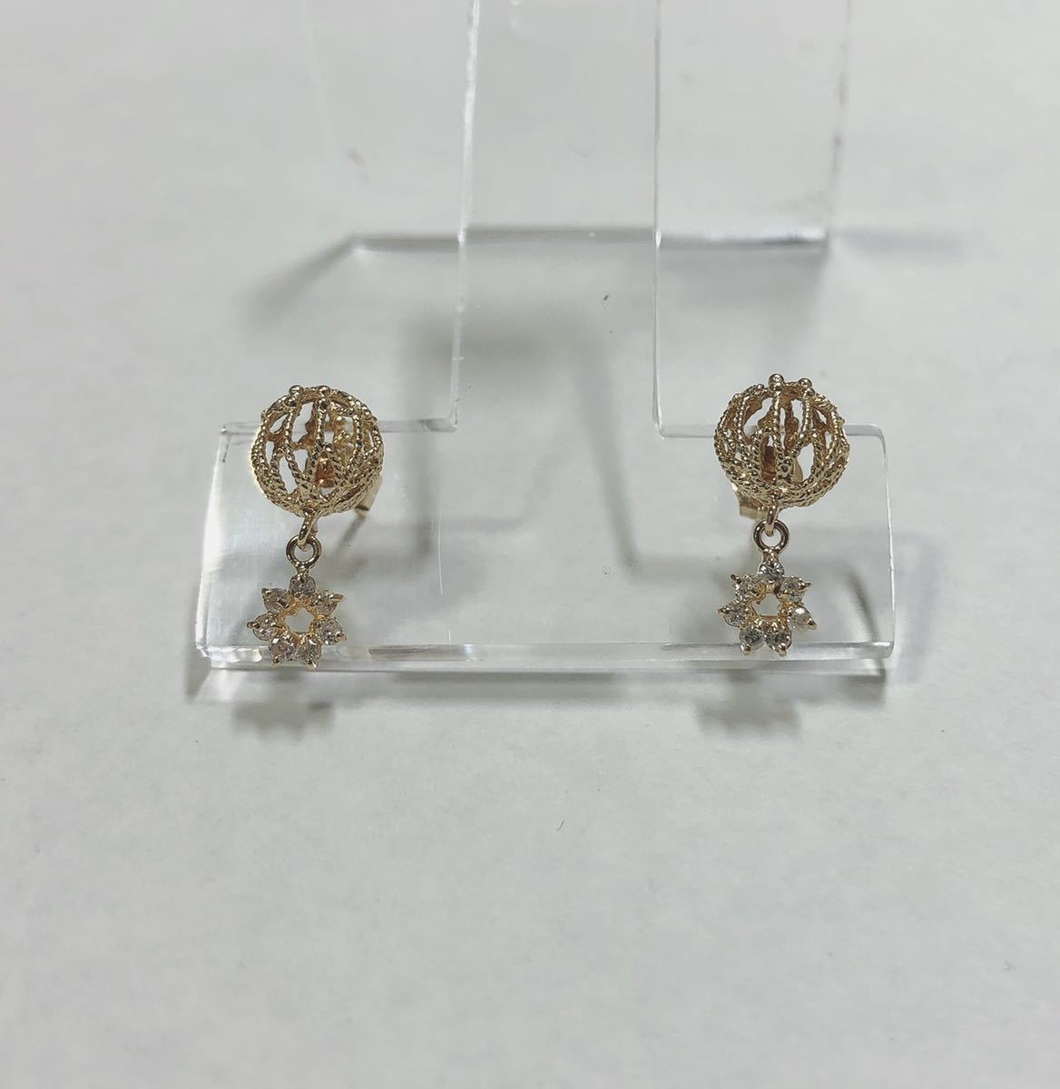 - 【質屋 尾張屋商店 東京】 ☆仕上済☆ K18YG イエローゴールド ダイヤモンドレディースピアス 丸 星 花びら