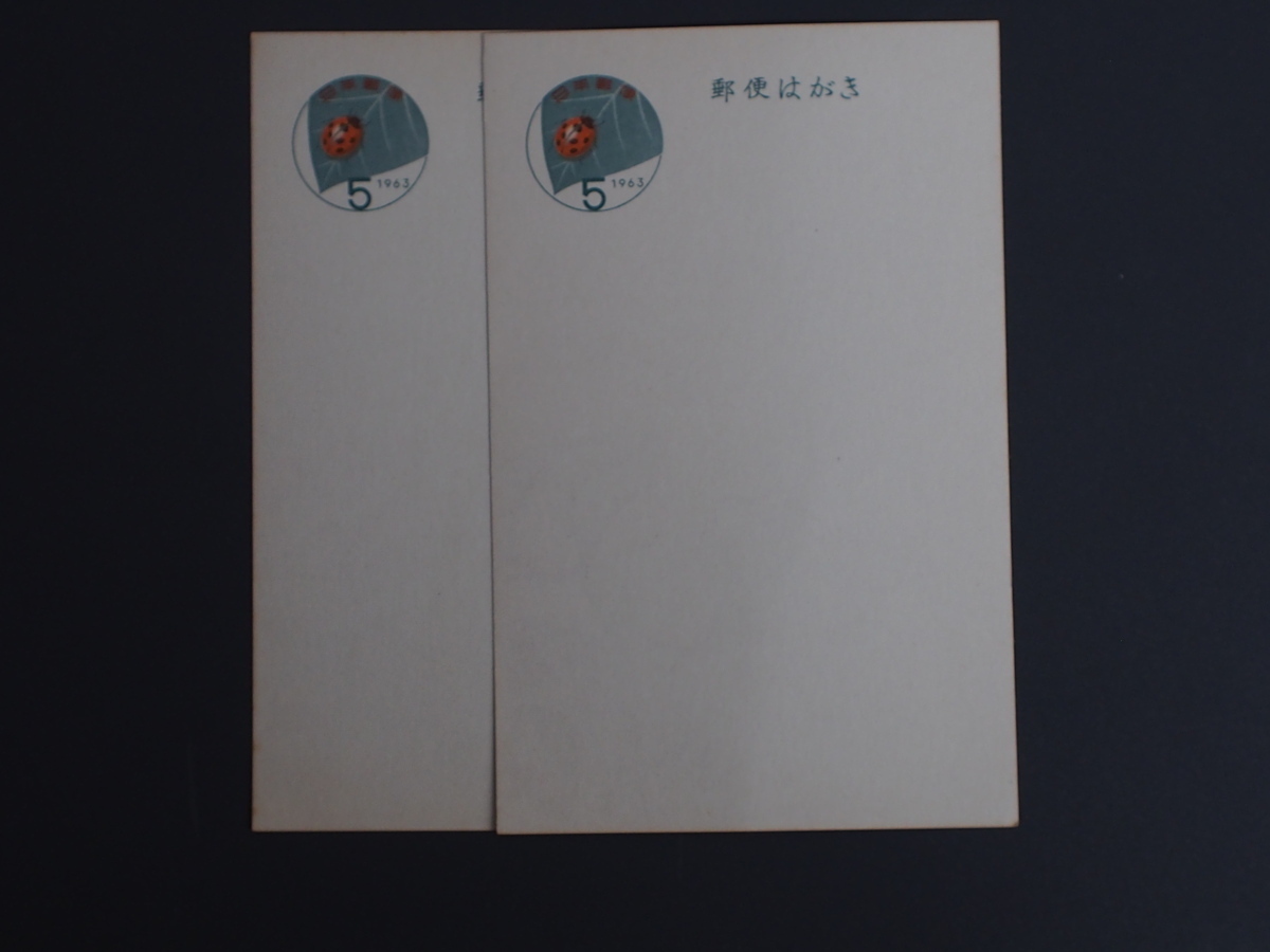 - 当時物 アンティーク 日本郵政 日本郵便 5円葉書 ハガキ はがき 1963年 表面:てんとう虫 裏面:椿 ツバキ No.3212