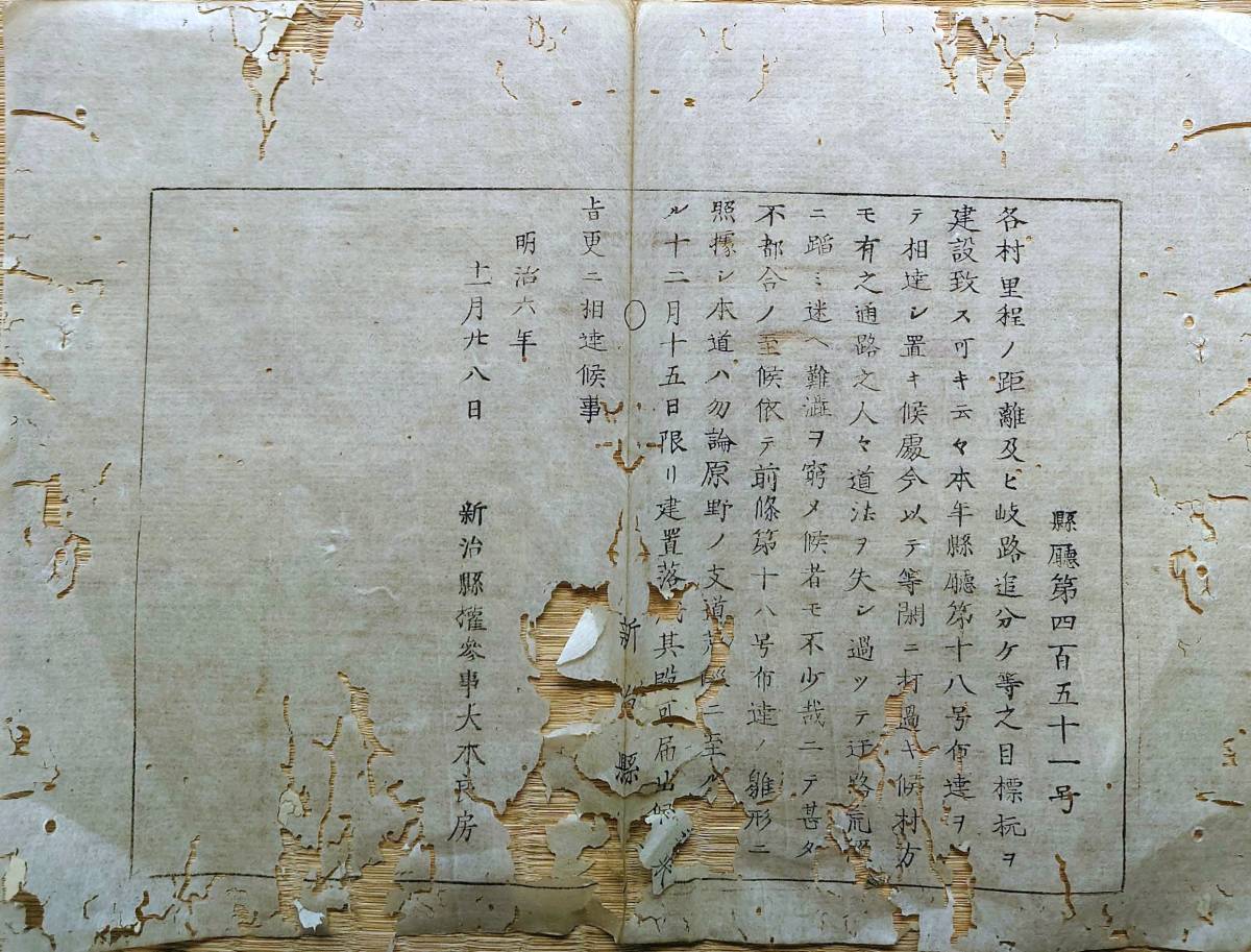 - f22042802〇明治布告布達 里程の距離 岐路追分の目標杭を建設 明治6年 新治県 茨城県〇和本古書古文書