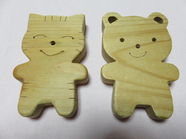 - 木製玩具 木のくま サイズ90-58㎜ 木のねこ サイズ86-58㎜ 木の素材 こどもにやさしい ユーズド品