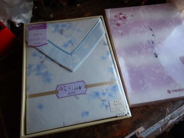 > 京都西川産業 綿毛布 掛けふとん 蒲団 140X210CM 07A CBK-533 綿100 しまいじみあり 未使用 箱処分して圧縮して送ります。