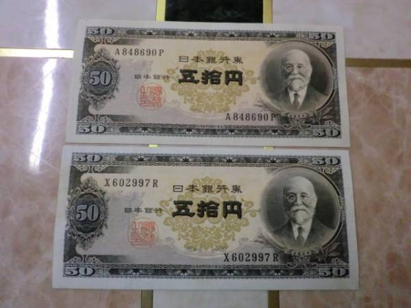 - ★ 日本銀行券B号50円 高橋50円 上美品 2枚 ★ No.315