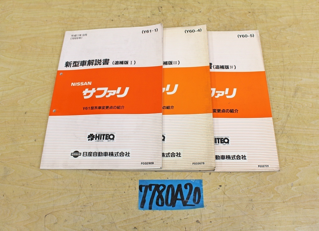 > 7780A20 NISSAN 日産自動車 新型車解説書 サファリ 追補版Ⅰ・Ⅲ・Ⅳ まとめて3冊セット マニュアル ニッサン
