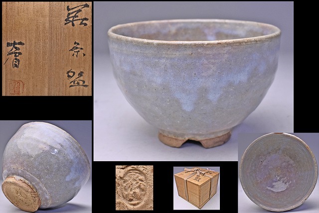 > 吉賀大眉 ★ 泉流山窯 ★ 萩 茶碗 ★ 共箱 ★師:人間国宝 加藤土師萌 / 沼田一雅 朝倉文夫 北村西望 ★ 青味を帯びた釉景の美しい逸品 ★