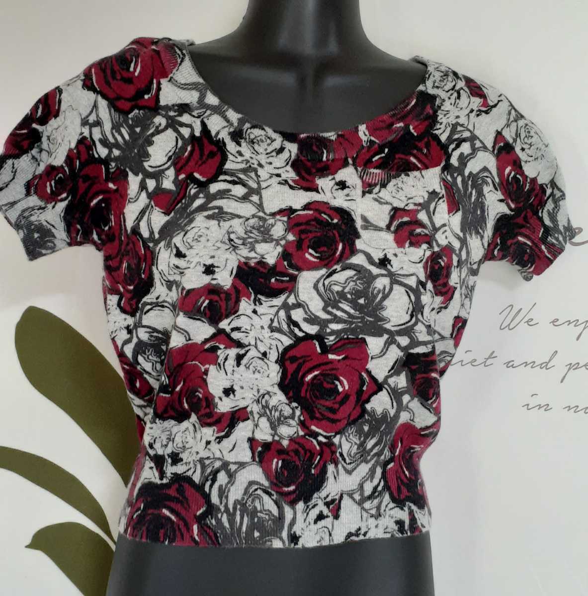 - 5/2 FOREVER21 ニットトップス ショート丈 花柄 トップス グレー系 サイズS