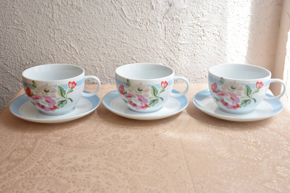 - PAY5・W10*キャスキッドソン*ブレックファースト*カップ&ソーサー*3客セット*アッシュダウンローズ*Cath*薔薇*バラ*C&S*大きめサイズ
