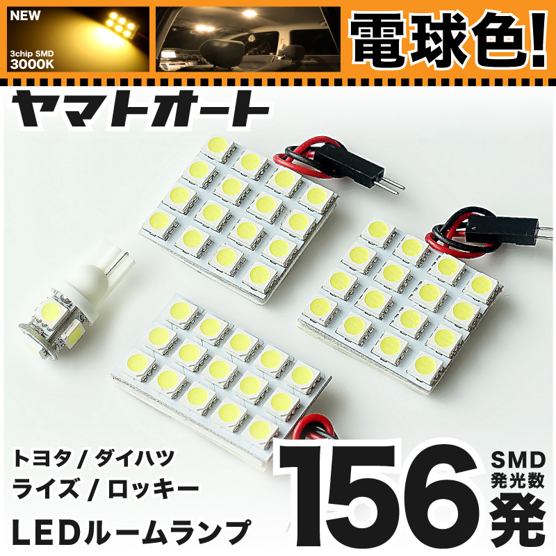 - ◆ロッキー A200S A210S ダイハツ ★電球色156発★ LED ルームランプ 4点セット [R1.11~] 【3000K】 ダイハツ 基板タイプ アクセサリー