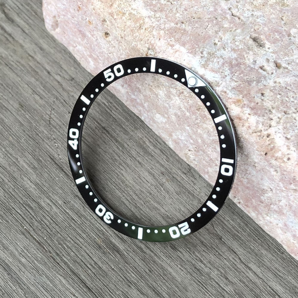 - セラミック製 ルミナス ベゼルインサート フラット型 ブラック 12H位置ルミナスドット LEVEL7【SEIKO MOD カスタムパーツ】