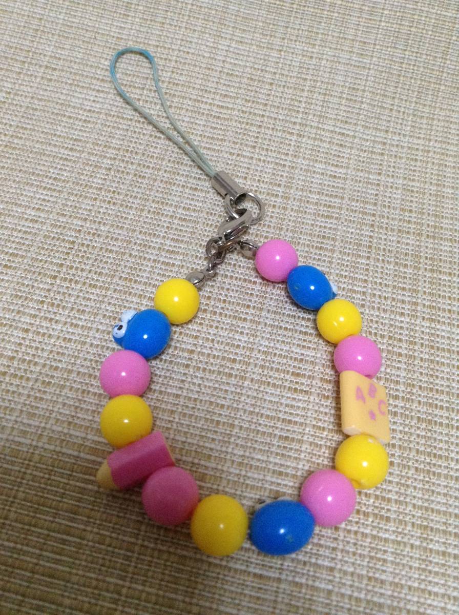 - ビーズ リング 携帯ストラップ えんぴつ,鉛筆 教科書,本 かえる(?),蛙(?) 輪っか