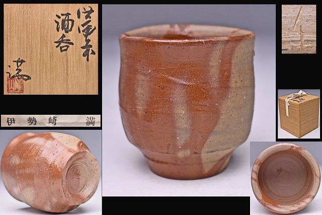 > 伊勢崎満 ★ 備前ぐい呑 ★ 共箱栞 ★ 色形とも良いぐい呑 ★ 岡山県無形文化財保持者 ★ 人間国宝 伊勢崎淳 と兄弟 ★ 備前焼