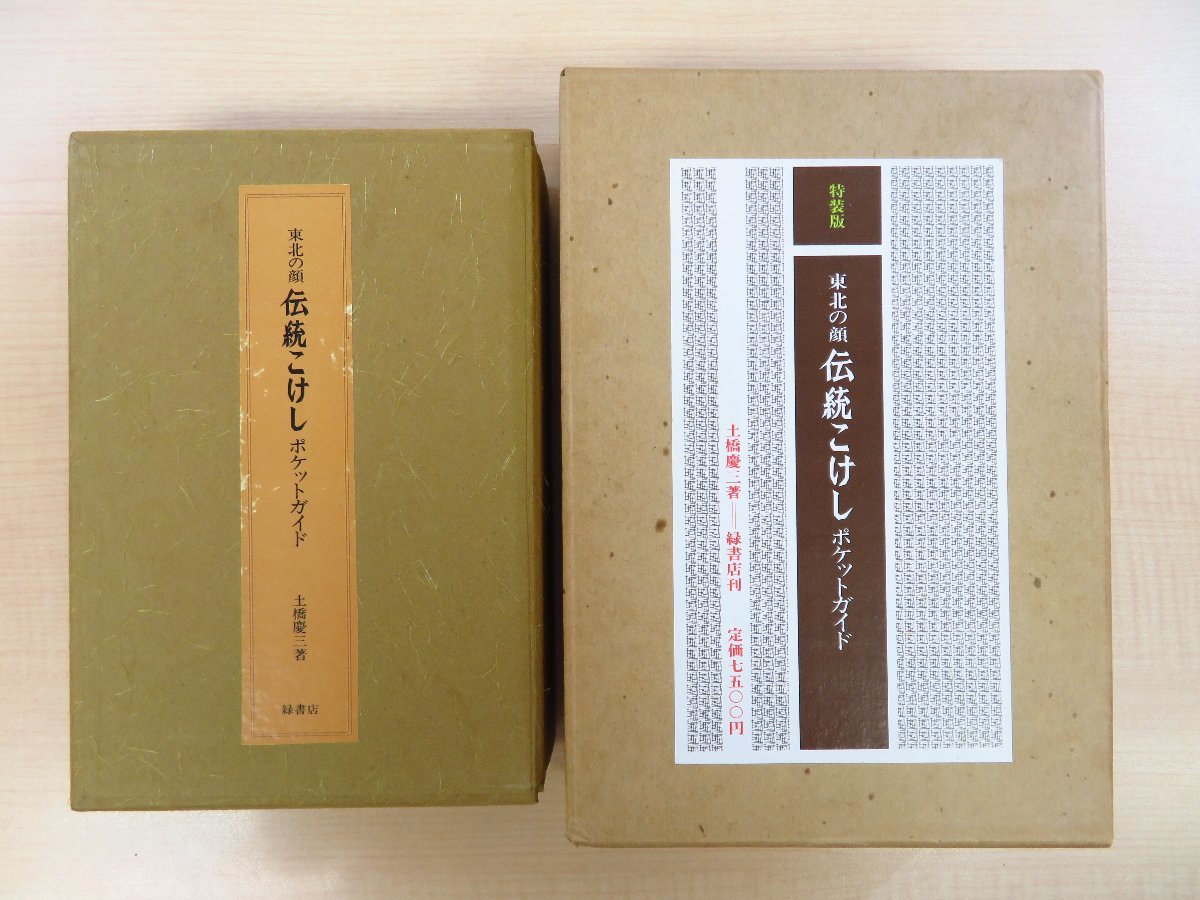 > 完品 土橋慶三『東北の顔 伝統こけし』限定50部 斎藤良輔・佐藤哲郎作の実物こけし嵌込+肉筆こけし絵3枚入
