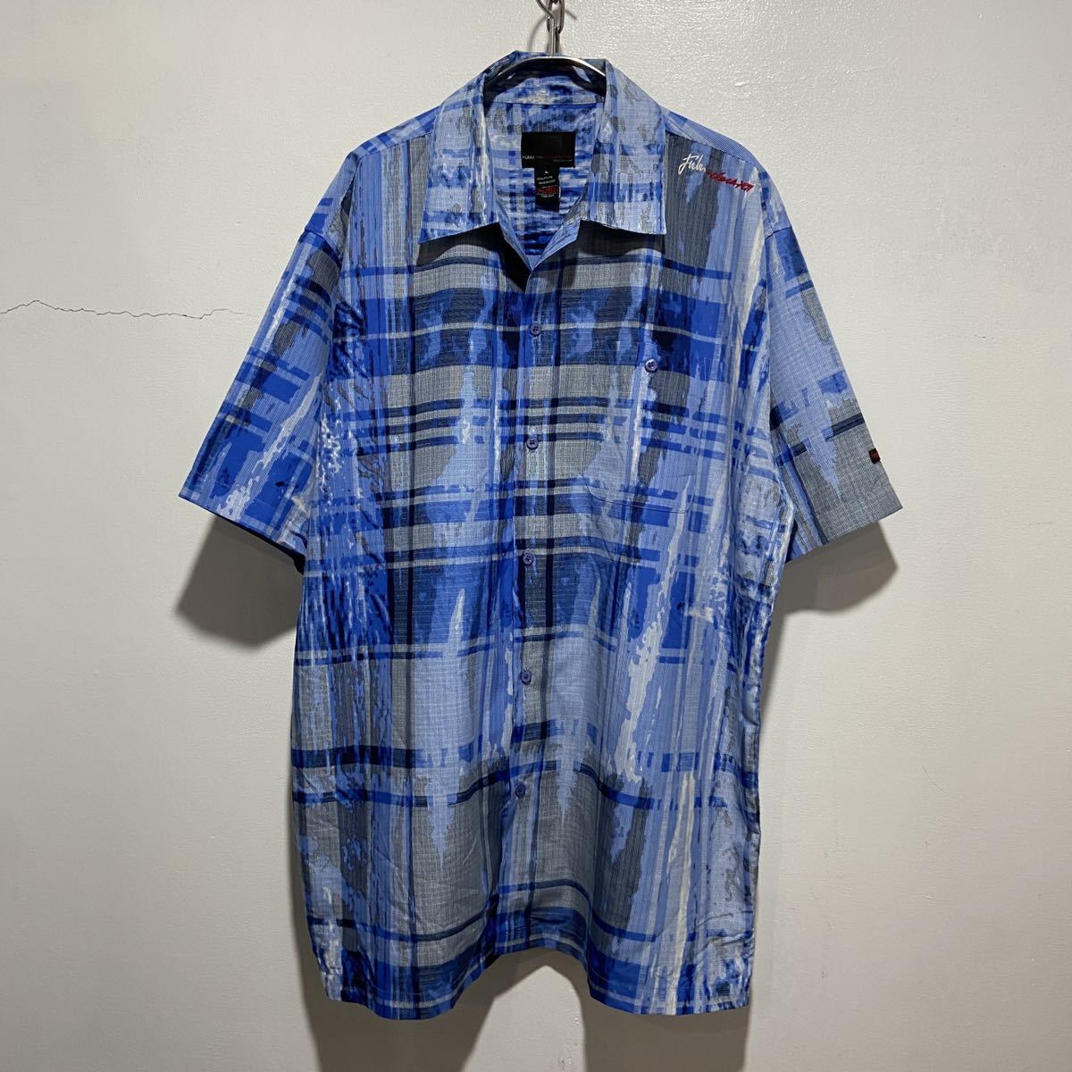 - 送料無料☆ 90s☆FUBU☆デジタルブリーチデザインシャツ☆アート系ポリシャツ☆L☆