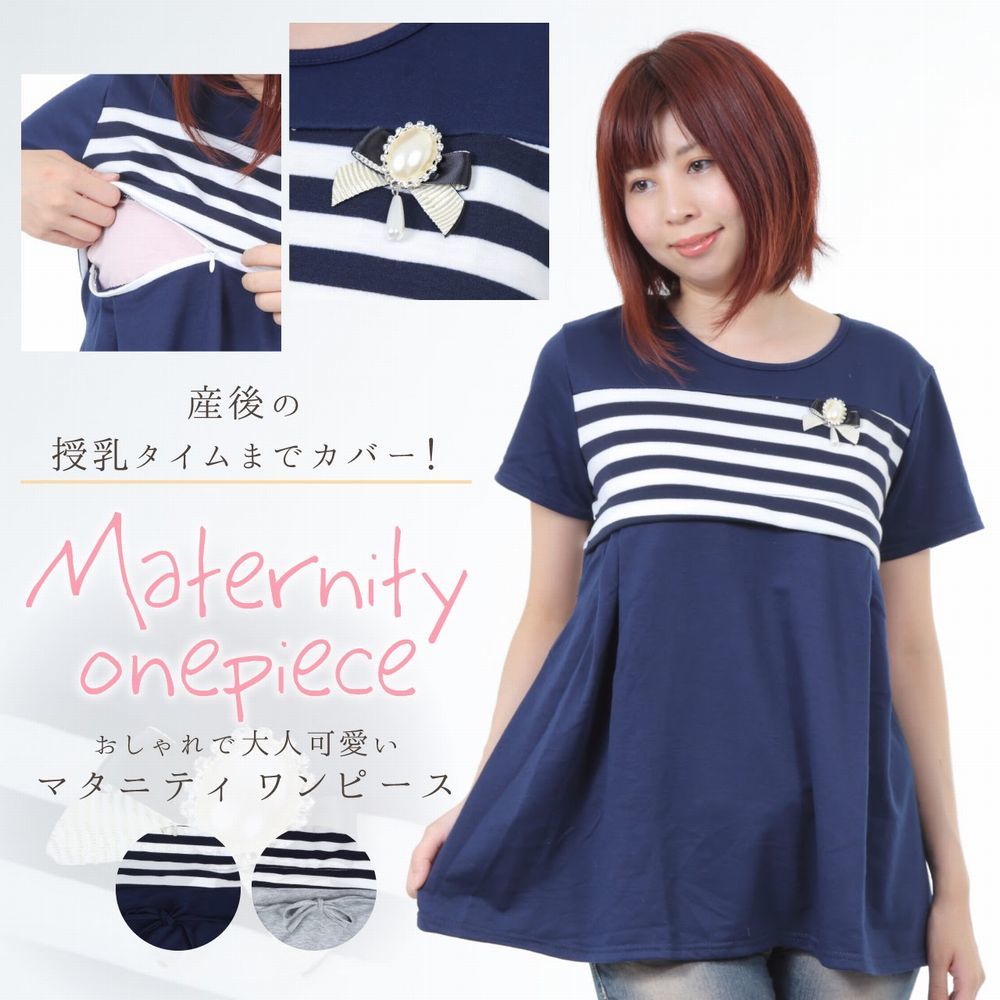 - ★☆ マタニティ服 おしゃれで安い ゆったり綿素材 ☆★ カラー:ブルー Lサイズ⑤