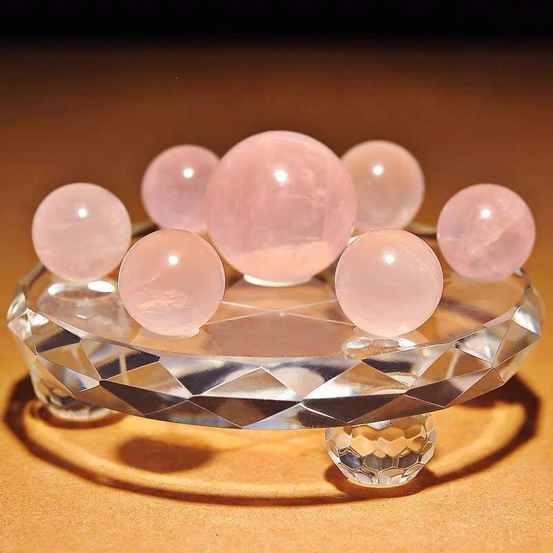 > 七星陣 ローズクォーツ 天然石 置物インテリア 幸運 ラッキー 原石 魔除 お守 恋愛運 クリスタル 開運 運気UP スフィア 丸玉 風水晶