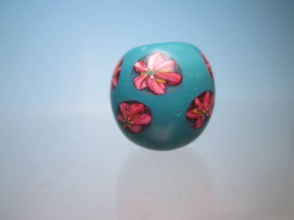 - ☆古法窯つくり 藤村トンボ玉工房 蜻蛉玉 水色花玉 1,7x1,6cm 7,59g 大阪伝統工芸品指定 美品 江戸トンボ玉