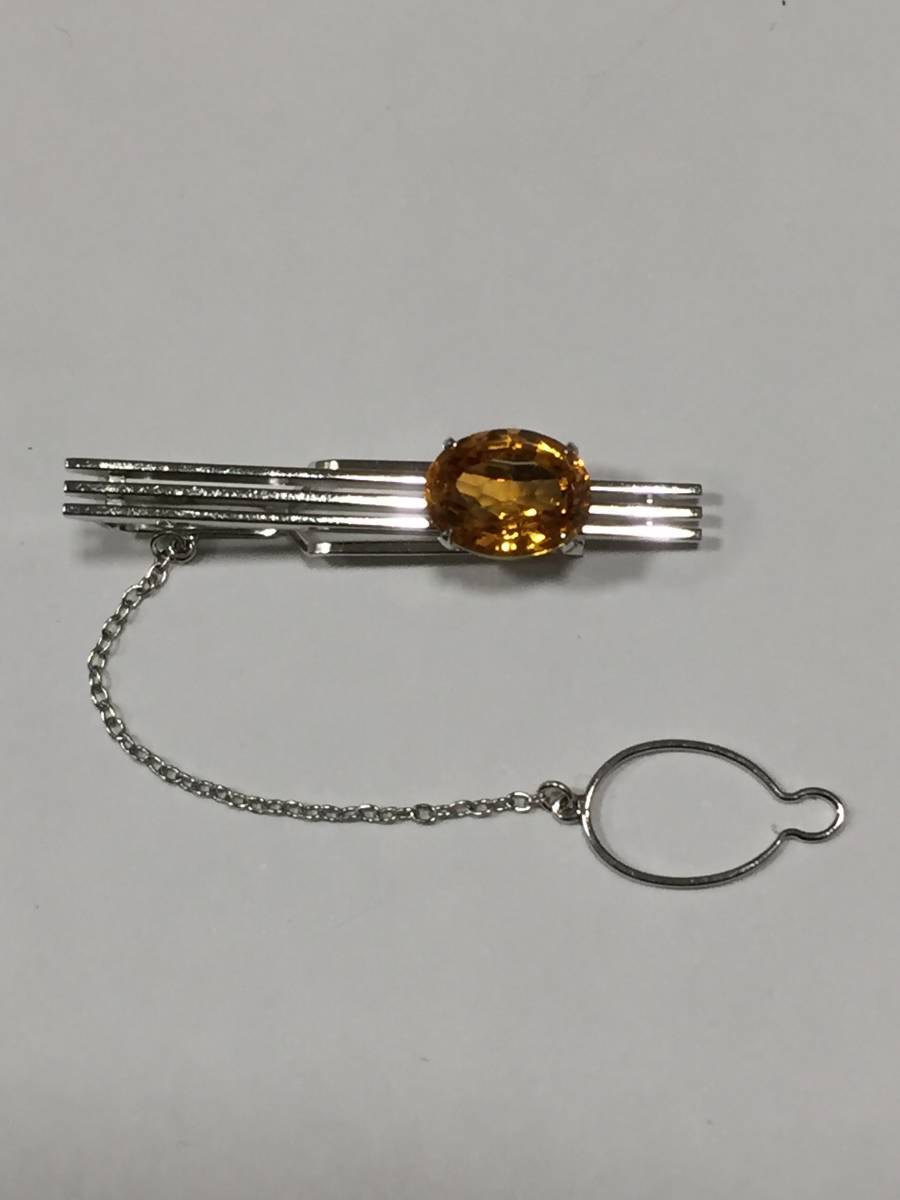 - 【質屋 尾張屋商店 東京】 ☆仕上済☆ K14WG 14金 シトリントパーズ タイバー ネクタイ用