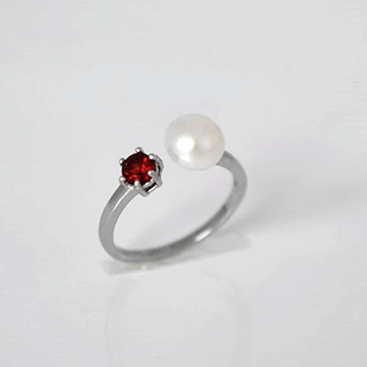 - オープンリング ガーネット 1月誕生石 淡水真珠 パール 指輪 リング