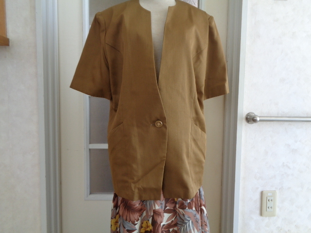 - a171-80 昭和レトロ スーツ 15号 麻混ジャケット 花柄スカート 80年代 日本製 タグ付き ヴィンテージ 未使用 長期保管品
