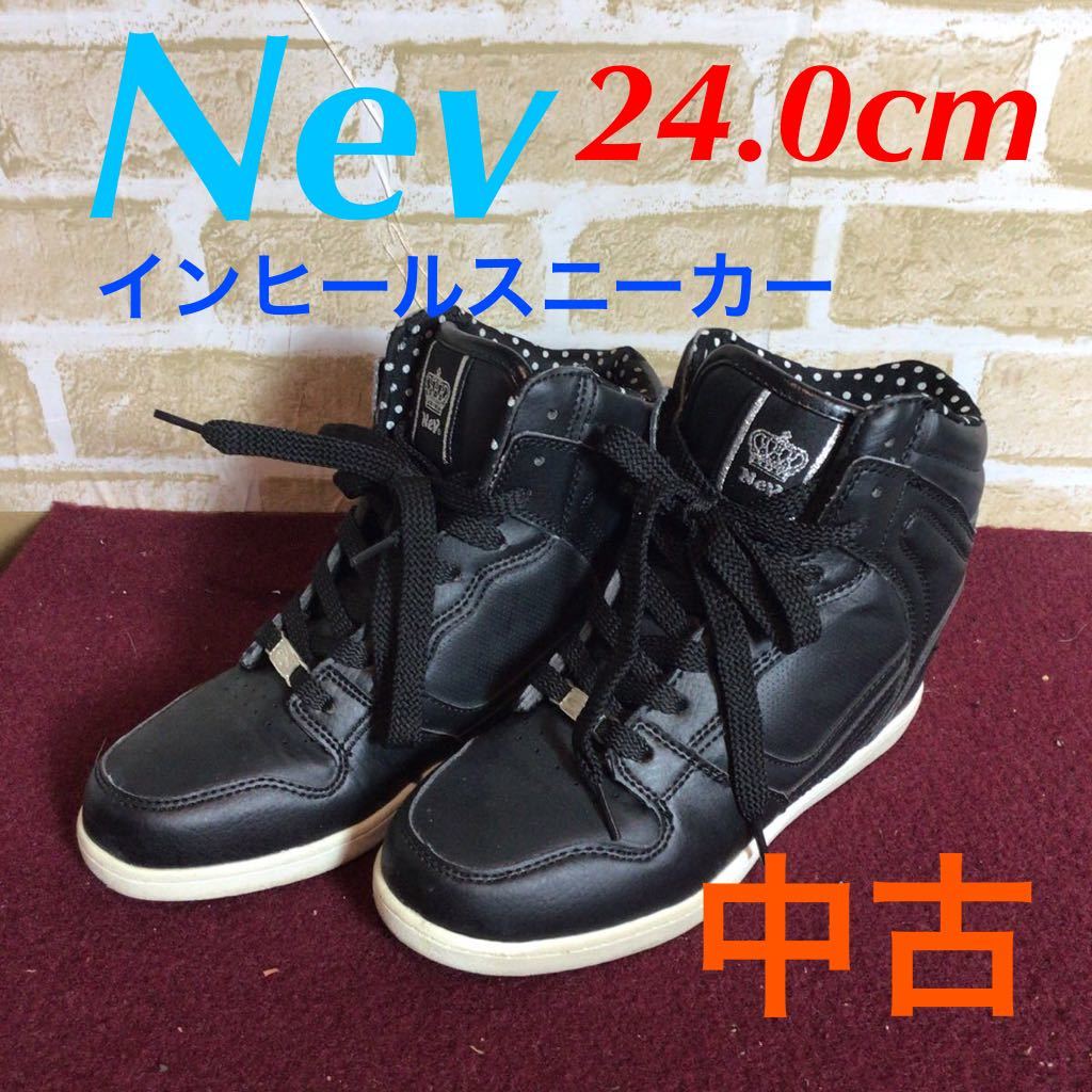- 【売り切り!送料無料!】A-209 Nev!ハイカットスニーカー!インヒールスニーカー!24.0cm!ブラック!水玉!インヒール8cm!スニーカー!中古!
