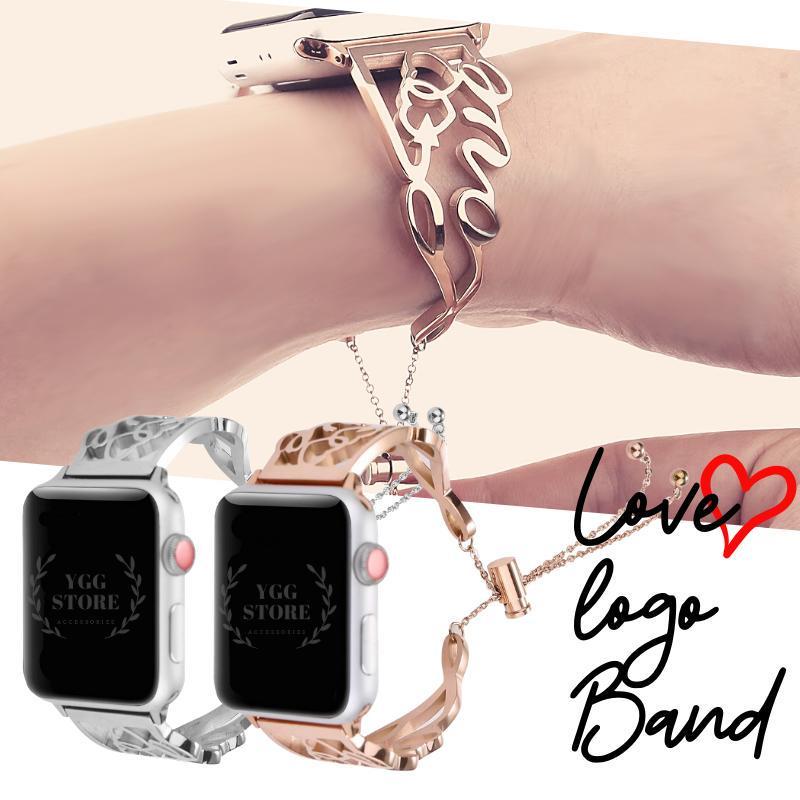 > 工具不要 apple watch Love ラブ バングル チェーン バンド ベルト 9 8 7 6 SE 5 4 3 アップルウォッチ シルバー ピンクゴールド 38 40 41