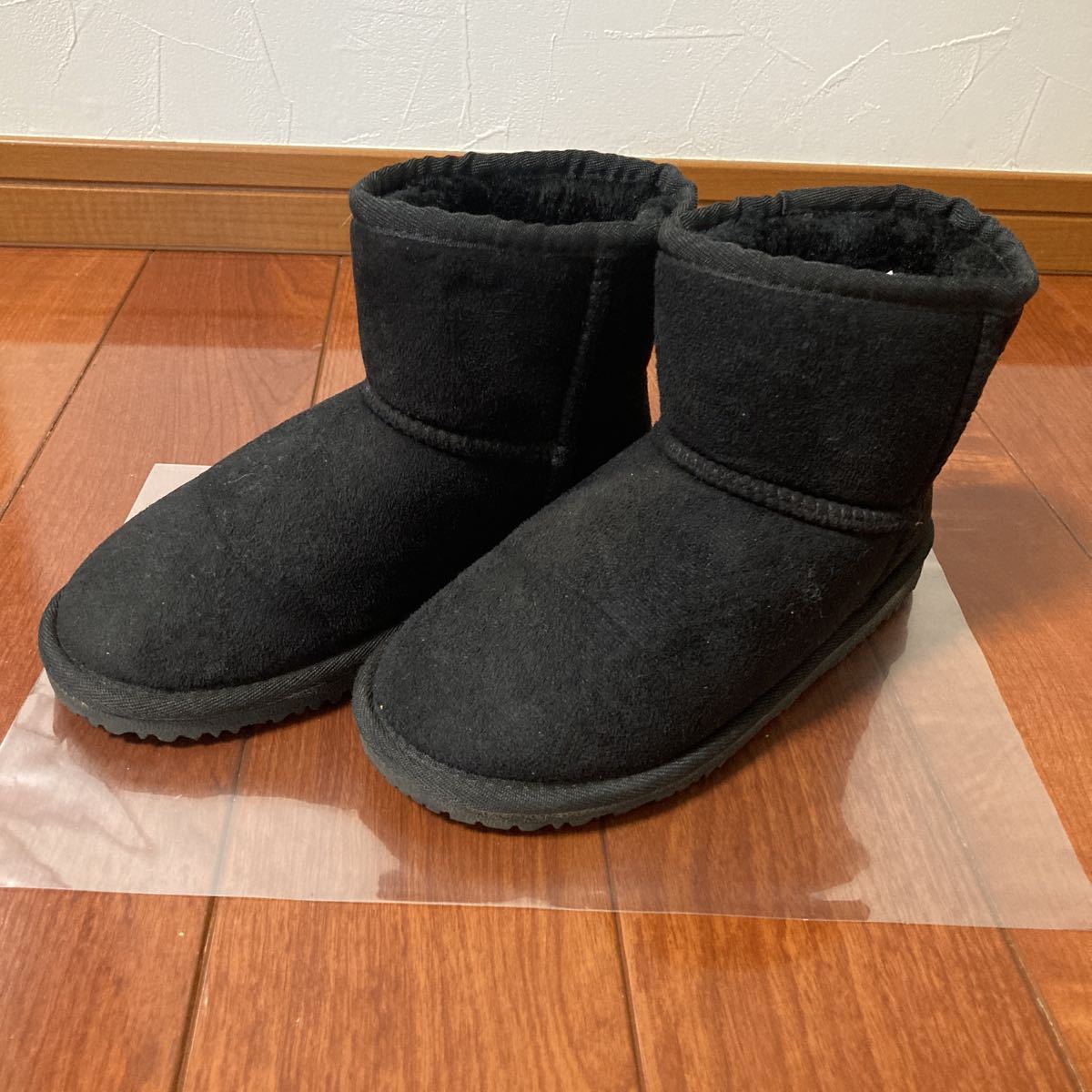 - ライトオン購入・フェイク・ムートンブーツ・ブラック・男女兼用・20cm