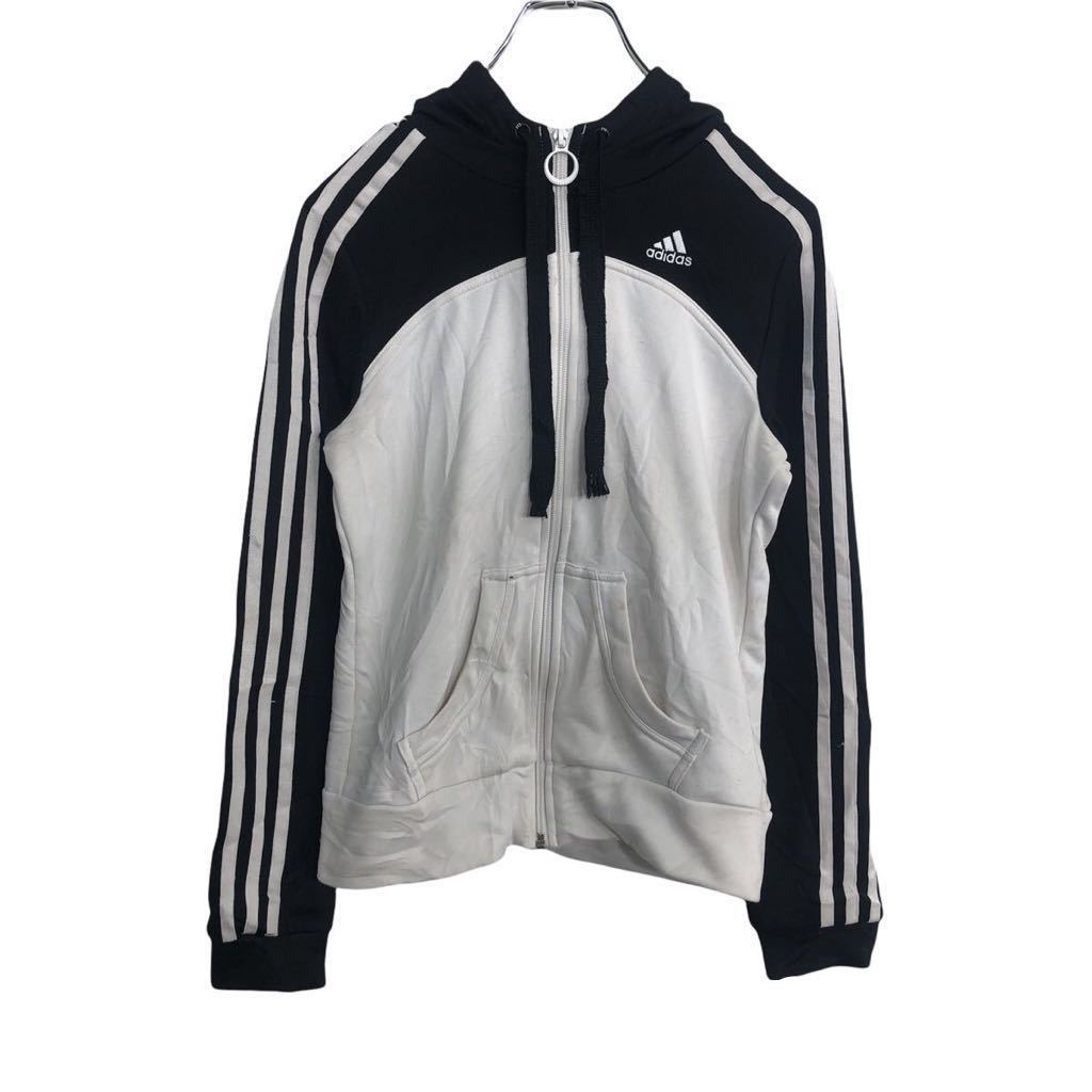 - adidas ジップアップパーカー キッズ S 白 黒 アディダス スウェットパーカー フーディー スポーツ 古着卸 アメリカ仕入 t2110-4005
