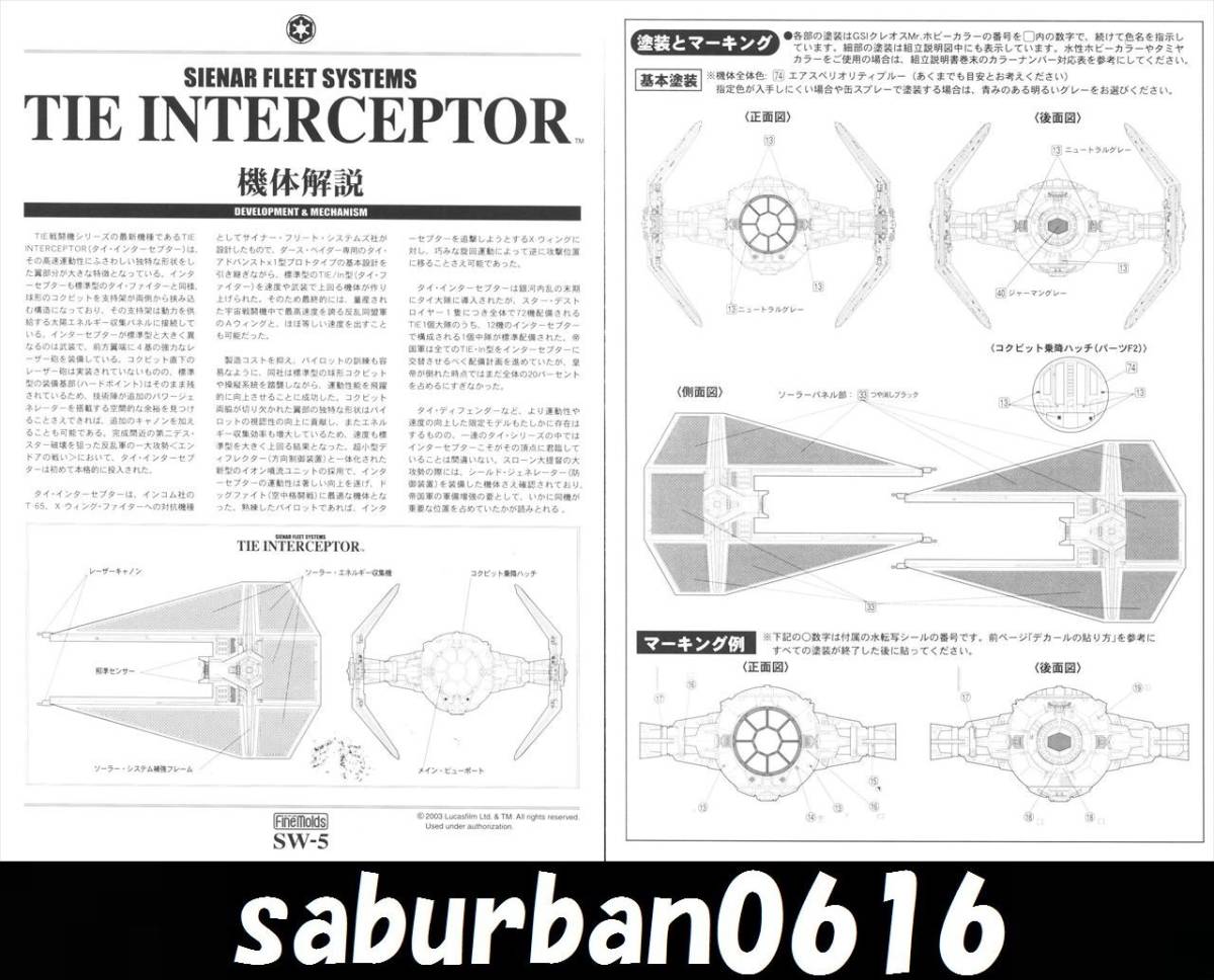 - R0000 スターウォーズ タイ インターセプター サイナー フリート システムズ社 反乱軍 戦闘機 FINEMOLDS ファインモールド SW-5 1/72説明書