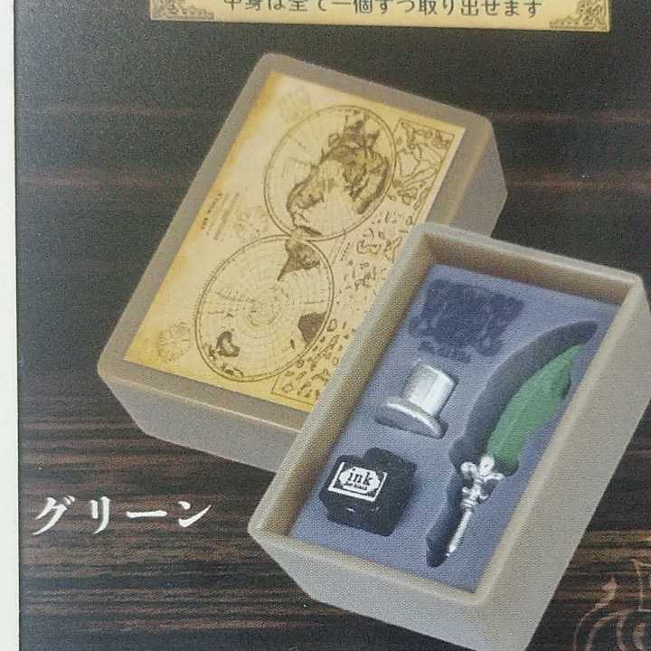 - グリーン ミニチュア羽根ペンセット ガチャガチャ ガチャ カプセルトイ ☆19-/37★ 45