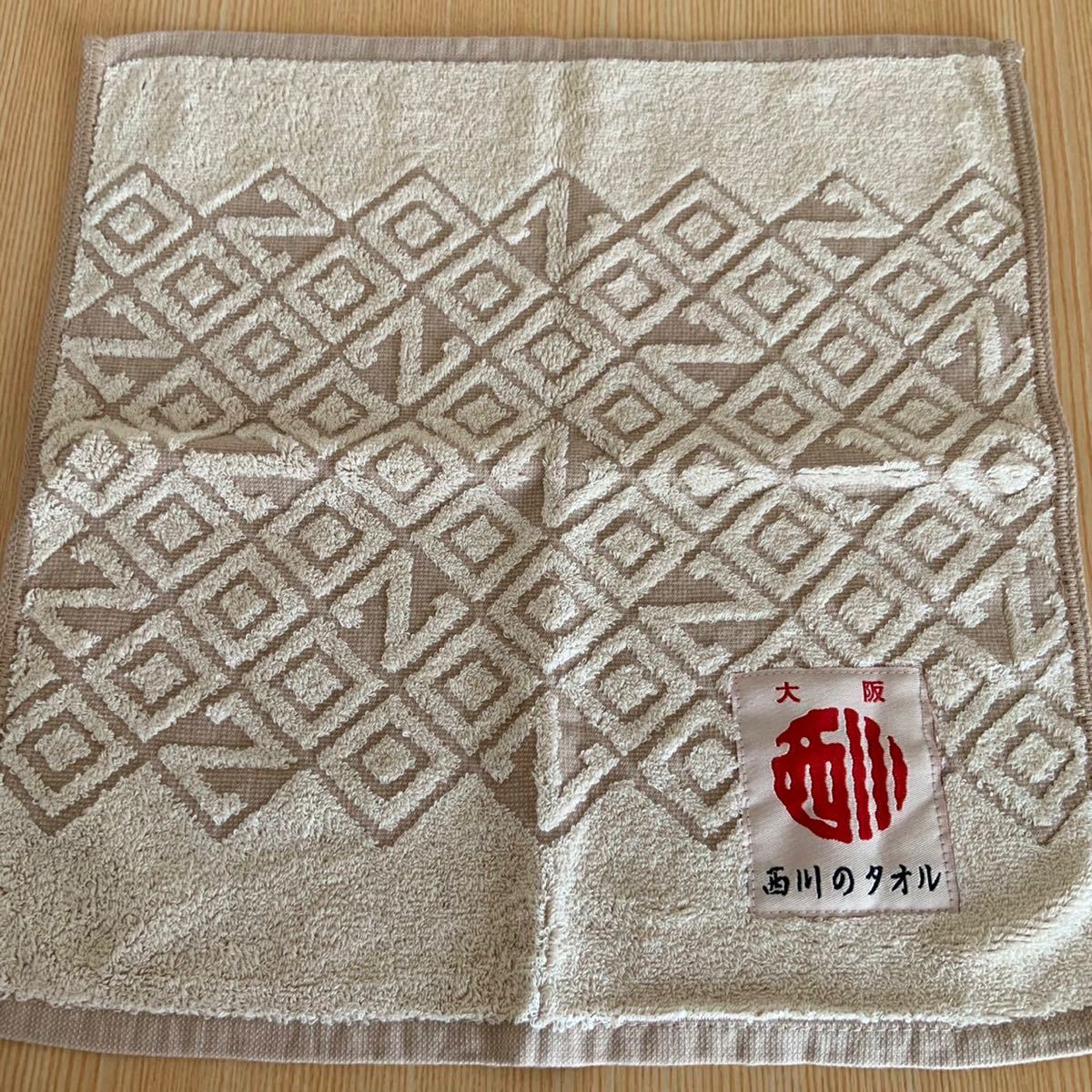> 未使用 西川のタオル ハンカチ 約34×35cm ロゴ ベージュ系 綿100% ハンドタオル タオルハンカチ 西川リビング