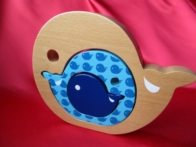 - Janod ジャノー くじら・クジラ・鯨形 木製 パズル 置物 中古品