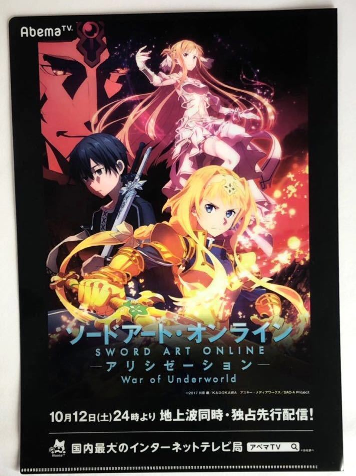 - SAO ソードアート・オンライン アリシゼーション Abema TV 放送告知クリアファイル A4サイズ 非売品 京まふ2109