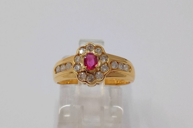 - K18 YG 3.0g ルビー 1石 ダイヤ 0.34ct リング 13号