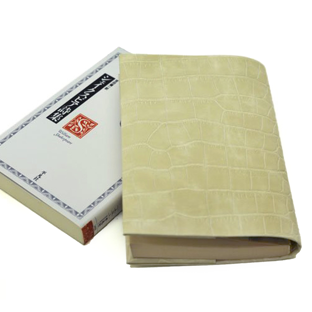 - 送料無料★お手入れいらずのリサイクルレザーブックカバー★平凡社ライブラリーサイズ★クロコ型押しクリーム