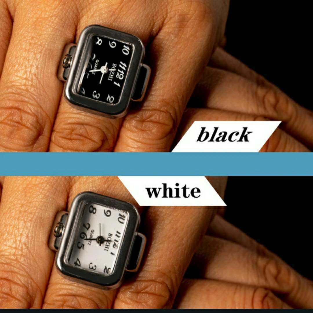 - 新品 未使用 指輪 時計 四角 フリーサイズ 銀 黒白セット 2