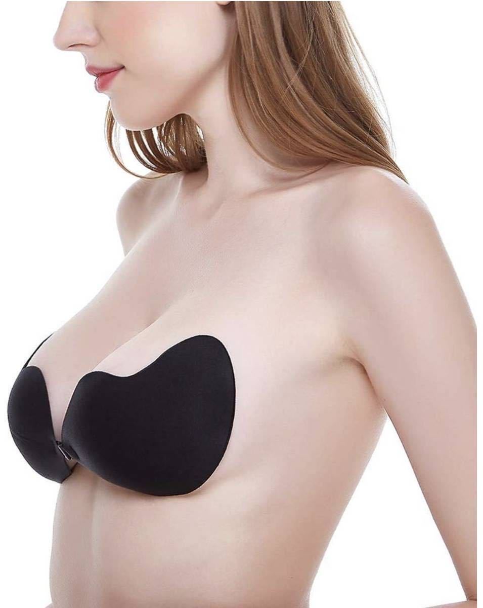- シリコンブラ ヌーブラ 水着 盛れる 超軽量26g 激盛り ドレス用インナー バックレス ブラ 胸パッド Dカップ ブラック 黒