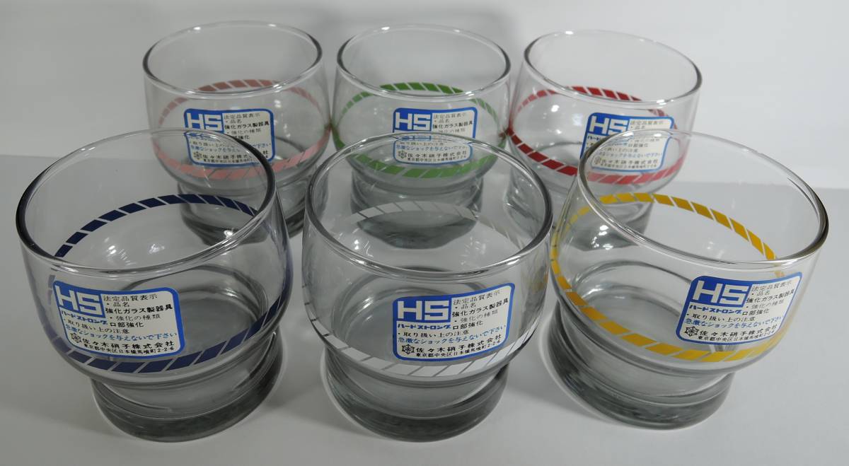 - ☆J02 レトロ■佐々木硝子 カラーライン 強化ウォーターグラス 6個セット■HS/ハードストロング 未使用