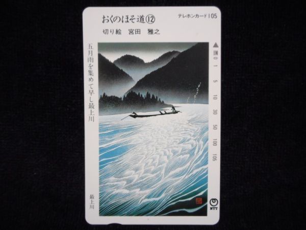 - テレカ 105度 おくのほそ道 ⑫ 切り絵 宮田雅之 最上川 イラスト T-7123 未使用