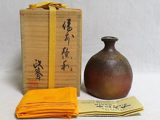 - 徳利 各見政峯 共箱 栞 共布 備前焼 酒呑 酒器