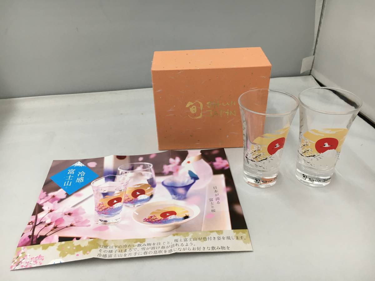 - 未使用品 フリーグラス ロックグラス ビールグラス タンブラー ペア 2個セット 丸モ高木陶器 旬JAPAN 冷感 富士山 桜 鶴