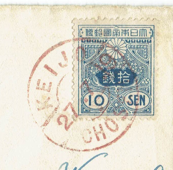 - 田沢旧大正毛紙10銭単貼米・シカゴ宛 鳶色朝鮮型欧文印KEIJO(京城)1919年7月27日