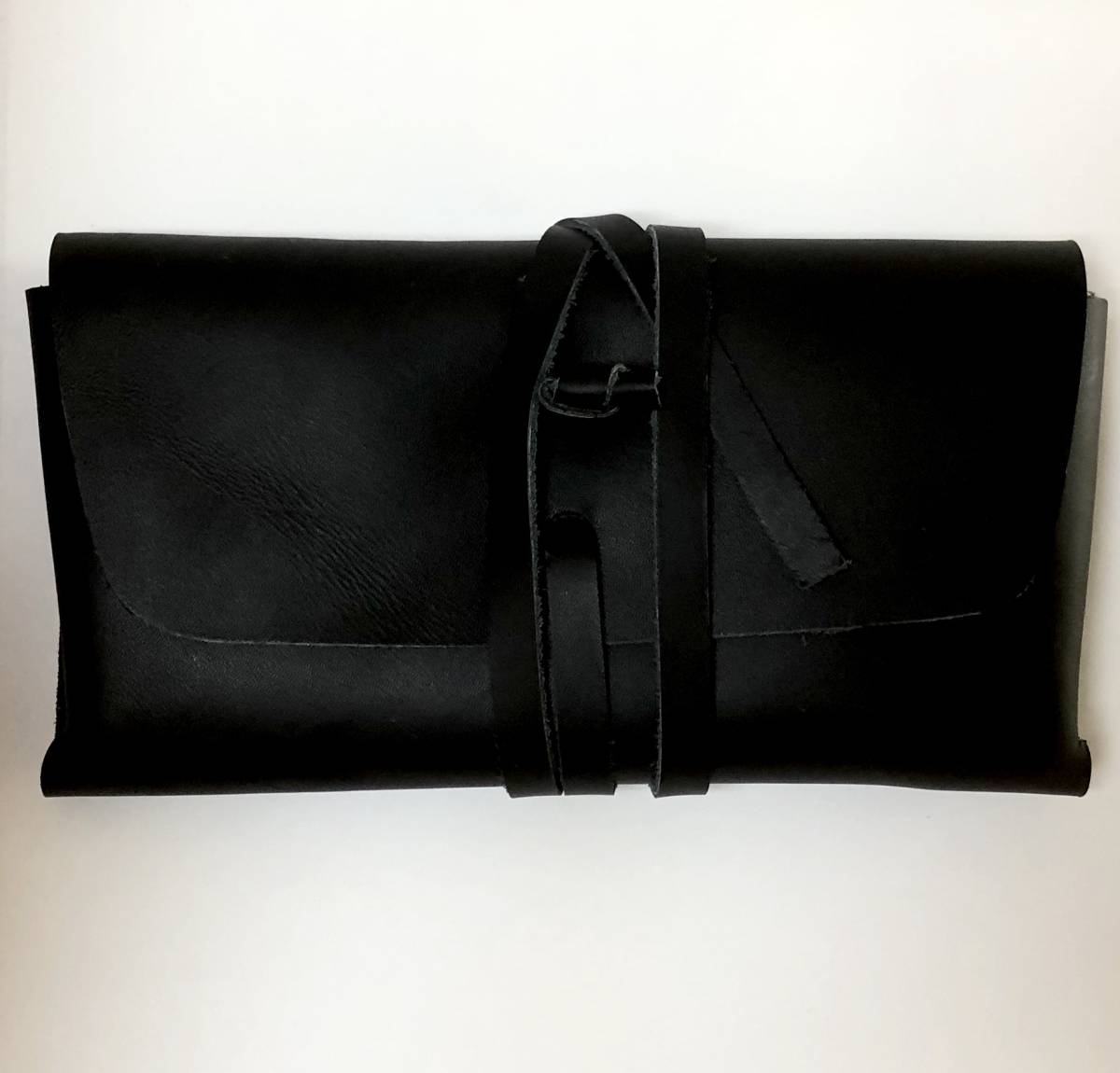- 新品/未開封】本革 レーザーケース (メガネ拭きのトレシー付) 一枚革 厚手レザー 黒ロープ 本牛革 ヴィンテージスタイル