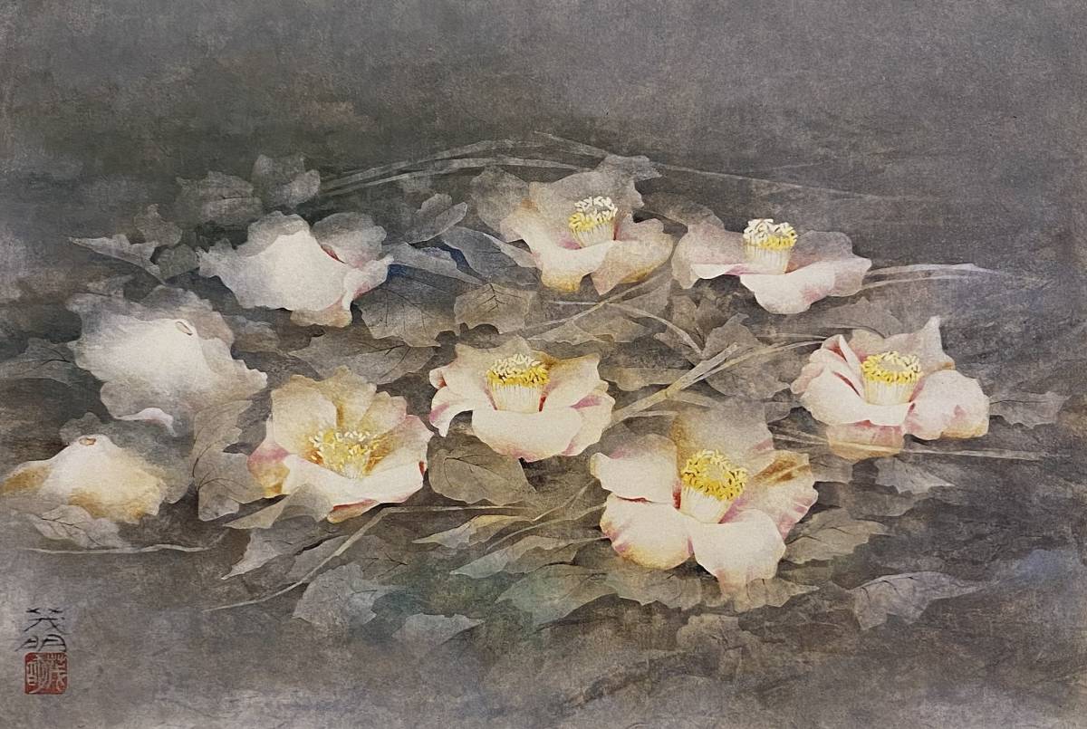 - 黒光茂明、〈土に咲く〉、希少画集画、高級新品額・額装付、状態良好、送料無料