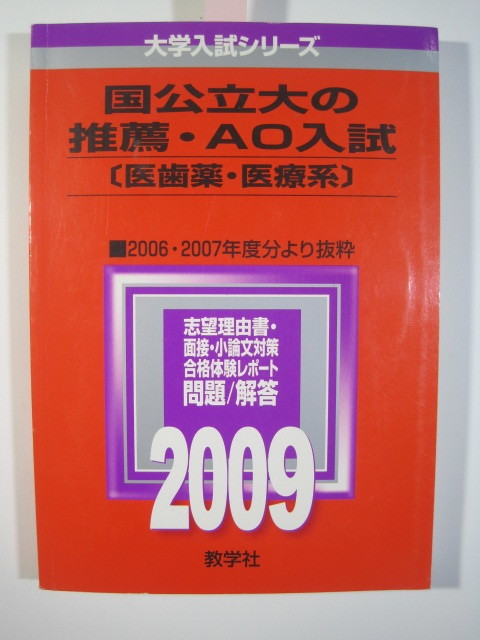 > 赤本 教学社 医学部 推薦 AO 推薦入試 2009 筑波大学 三重大学 佐賀大学 秋田大学 群馬大学 山口大学 山形大学 香川大学 弘前大学